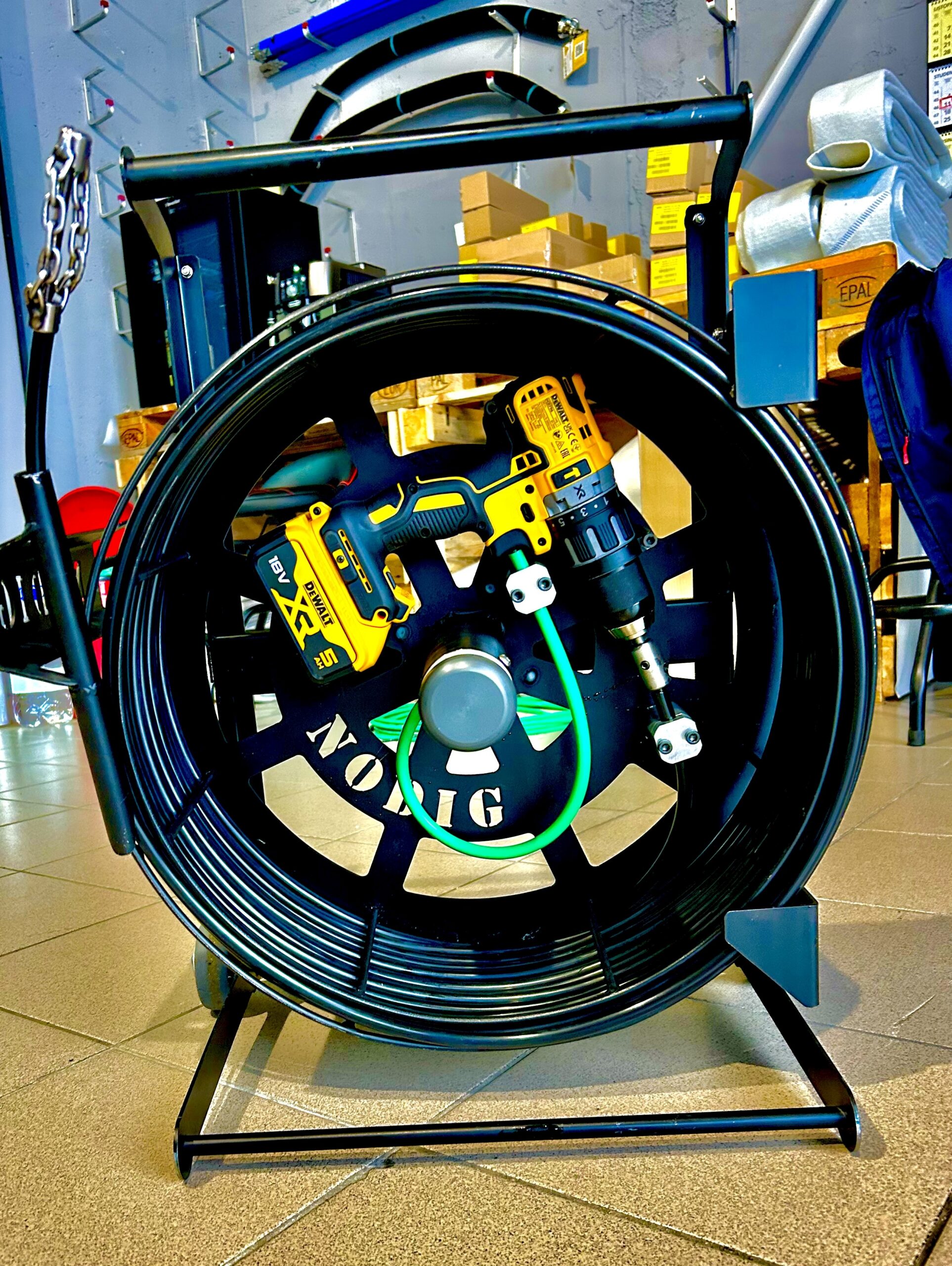 Stroj za čišćenje i odštopavanje kanalizacijskih cijevi malog promjera koji je u potpunosti dizajniran i izrađen u radionici NoDig d.o.o na kojem su radili majstori sa dugogodišnjim iskustvom u poslovima odštopavanja i čišćenja kanalizacijskih cijevi.